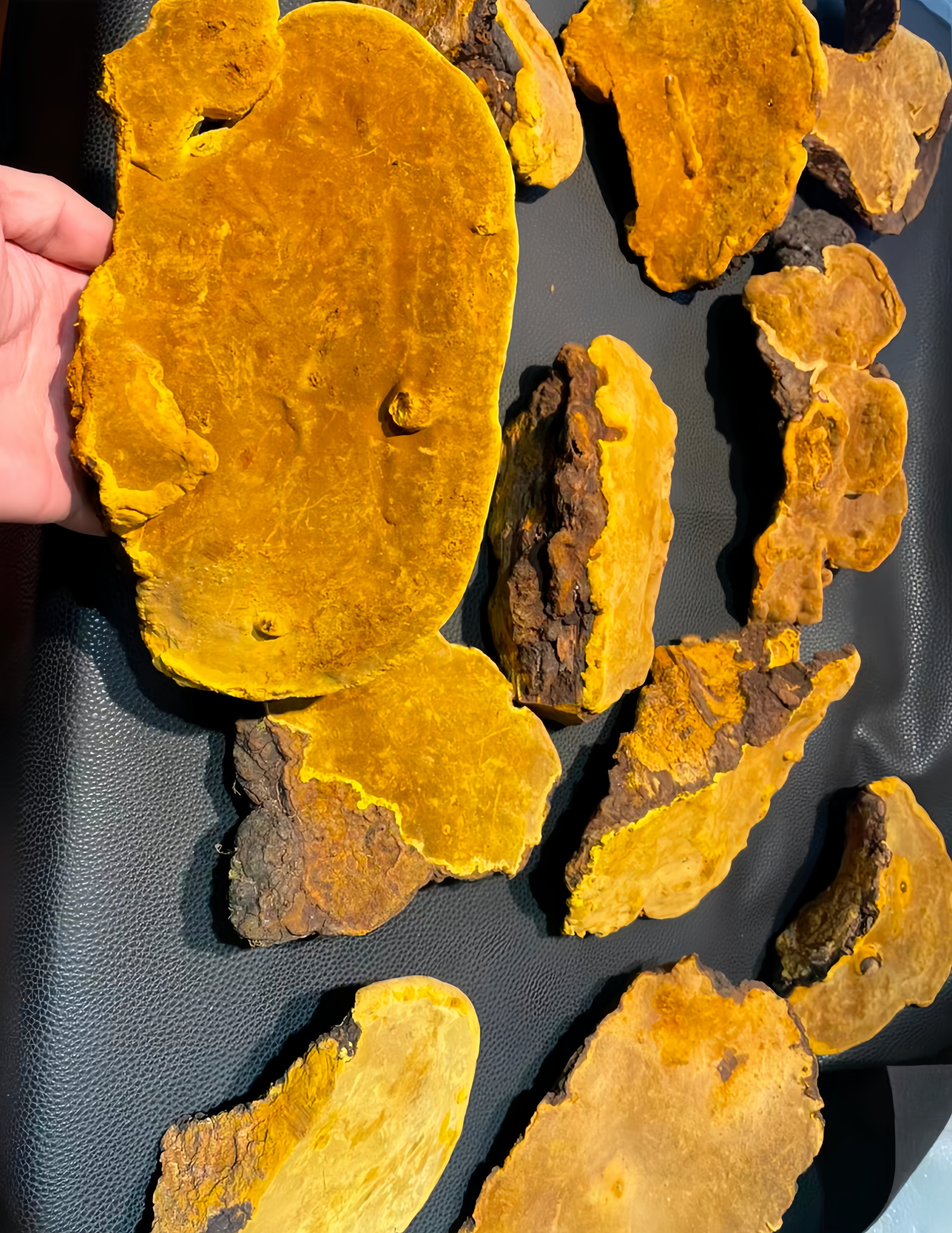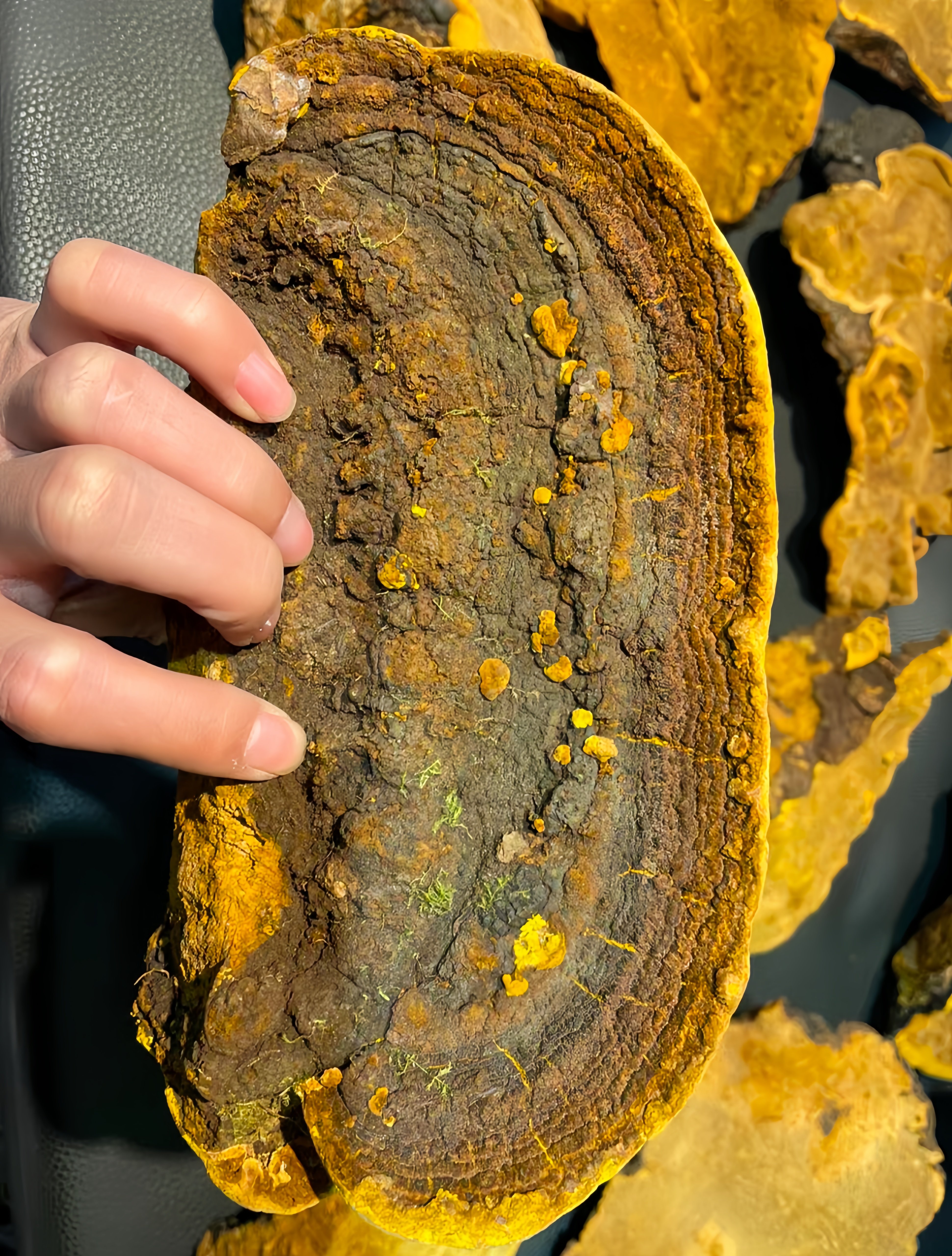 低山的,年份短的,桑黄本身肉质就薄一些。肉质密度就没有那么紧实,肉质也黄一些。